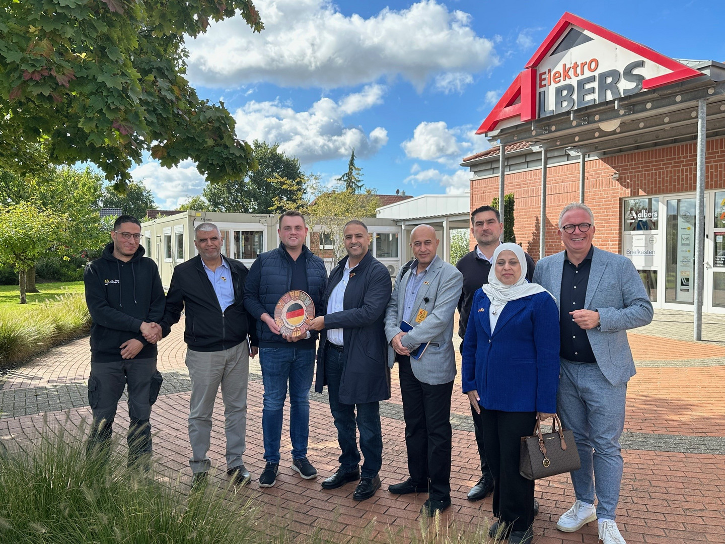 Beim Besuch bei Elektro Albers in Ochtrup war die Freude groß, denn als Projektpartner der ersten Stunde hat der Betrieb bereits mehreren Auszubildenden aus Jordanien die Chance auf eine Ausbildung in Deutschland gegeben. Im Gespräch tauschten sich die Beteiligten über die bisherigen Erfahrungen, aber auch über die Voraussetzungen für Jugendliche aus Jordanien, um ebenfalls erfolgreich an dem Programm teilnehmen zu können.