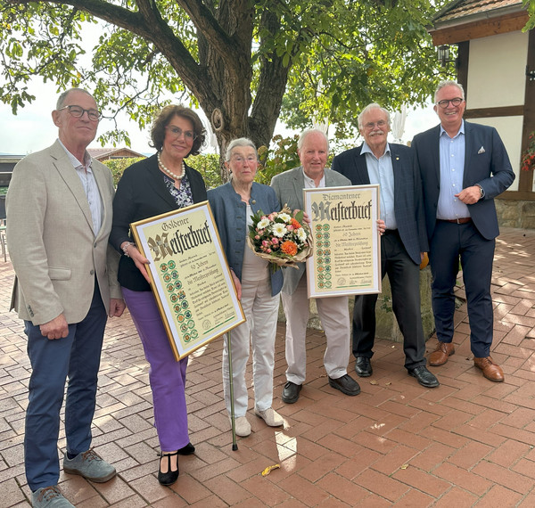 Es war ein würdiger, kurzweiliger und sehr, sehr netter Nachmittag. Frank Tischner stellte die besonderen Aktivitäten der Kreishandwerkerschaft vor und Erika Wahlbrink konnte zusammen mit dem Ehrenobermeister der Bäcker- und Konditoren-Innung Steinfurt Warendorf und dem ehemaligen Vize-Präsidenten der Handwerkskammer Münster, Josef Trendelkamp, den Diamantenen Meisterbrief an Anton Mersch aus Rheine überreichen.