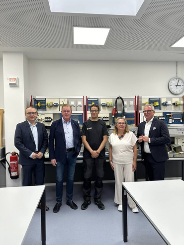 Bei ihrem Besuch in der Kreishandwerkerschaft Steinfurt Warendorf sprach Svenja Schulze Bundesministerium für wirtschaftliche Zusammenarbeit und Entwicklung (BMZ) mit den jungen Jordaniern, die am 1. August bei Innungsbetrieben in der Region in ihre…